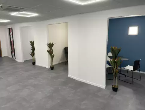 - Un espace de vie de 200 m², comprenant une cafétéria, des tables d’hôtes pour déjeuner, un lounge confortable avec fauteuils et banquettes, ainsi qu’un espace de travail équipé de quatre box pour s’isoler et travailler en groupe